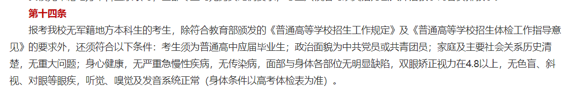 该校在2024年无军籍本科地方生招生简章中表示,对于无军籍本科地方生只招收应届毕业生。