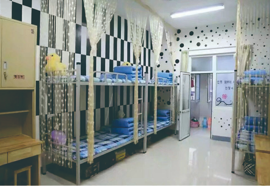 2、四人间有带沙发的,不带沙发的。有的是上床下桌,有的是上下铺看具体情况。空调地暖标配同上。不过有些四人间是小的家用空调,而且直接挂在床头上,感觉很伤身体。