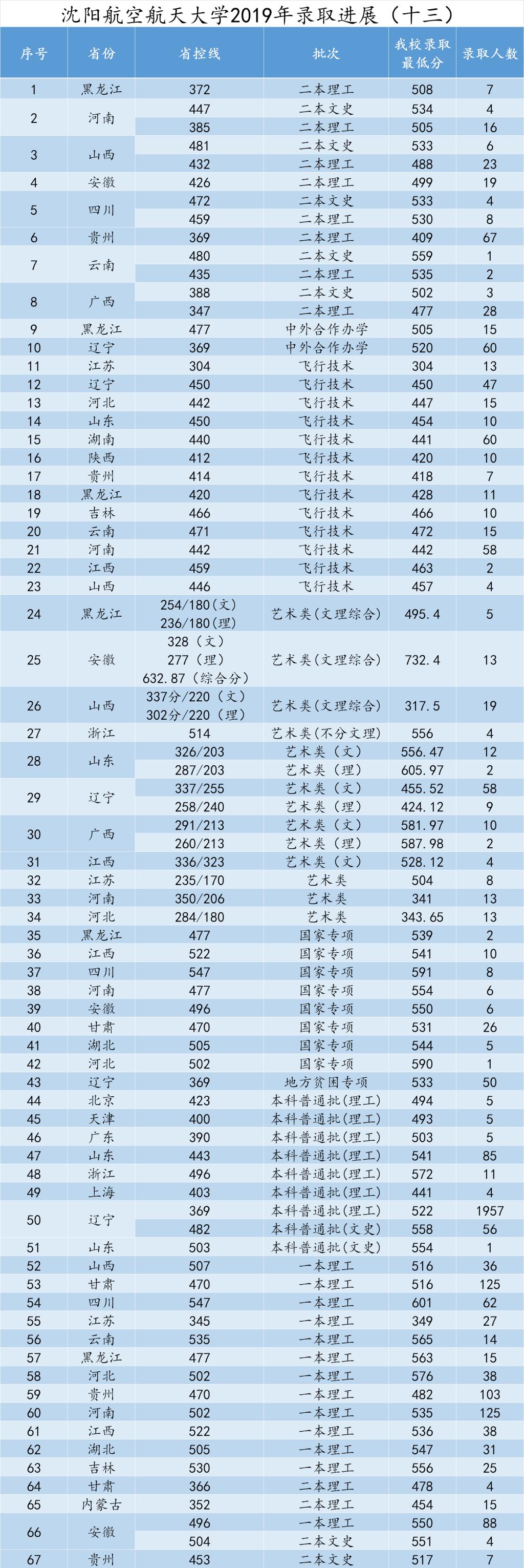 最后,我们一起来看下沈阳航空航天大学2019年各省的录取分数线情况: