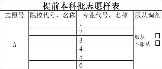 提前本科批(每个院校专业组志愿设10个专业志愿和1个专业服从院校调剂标志,下同)